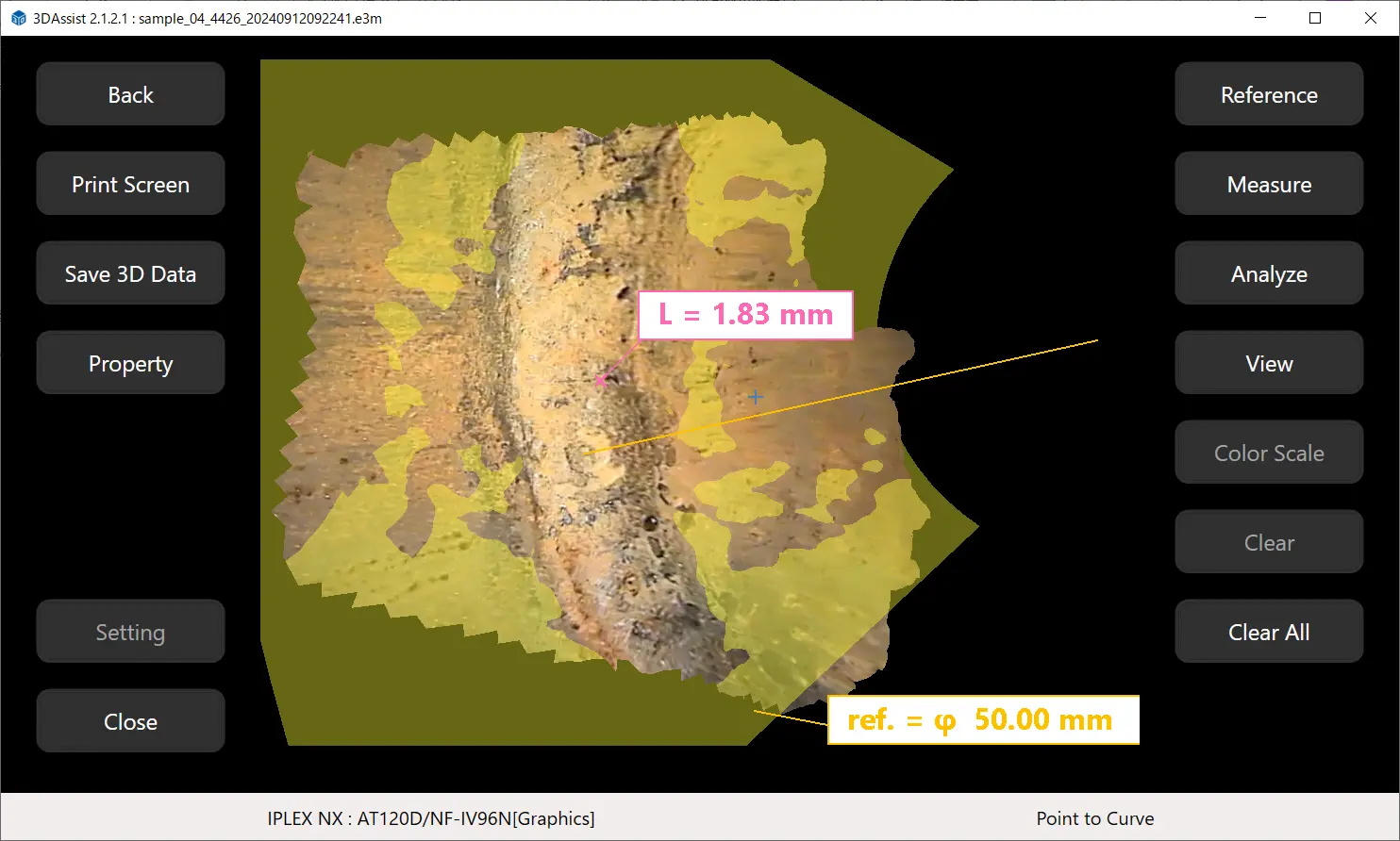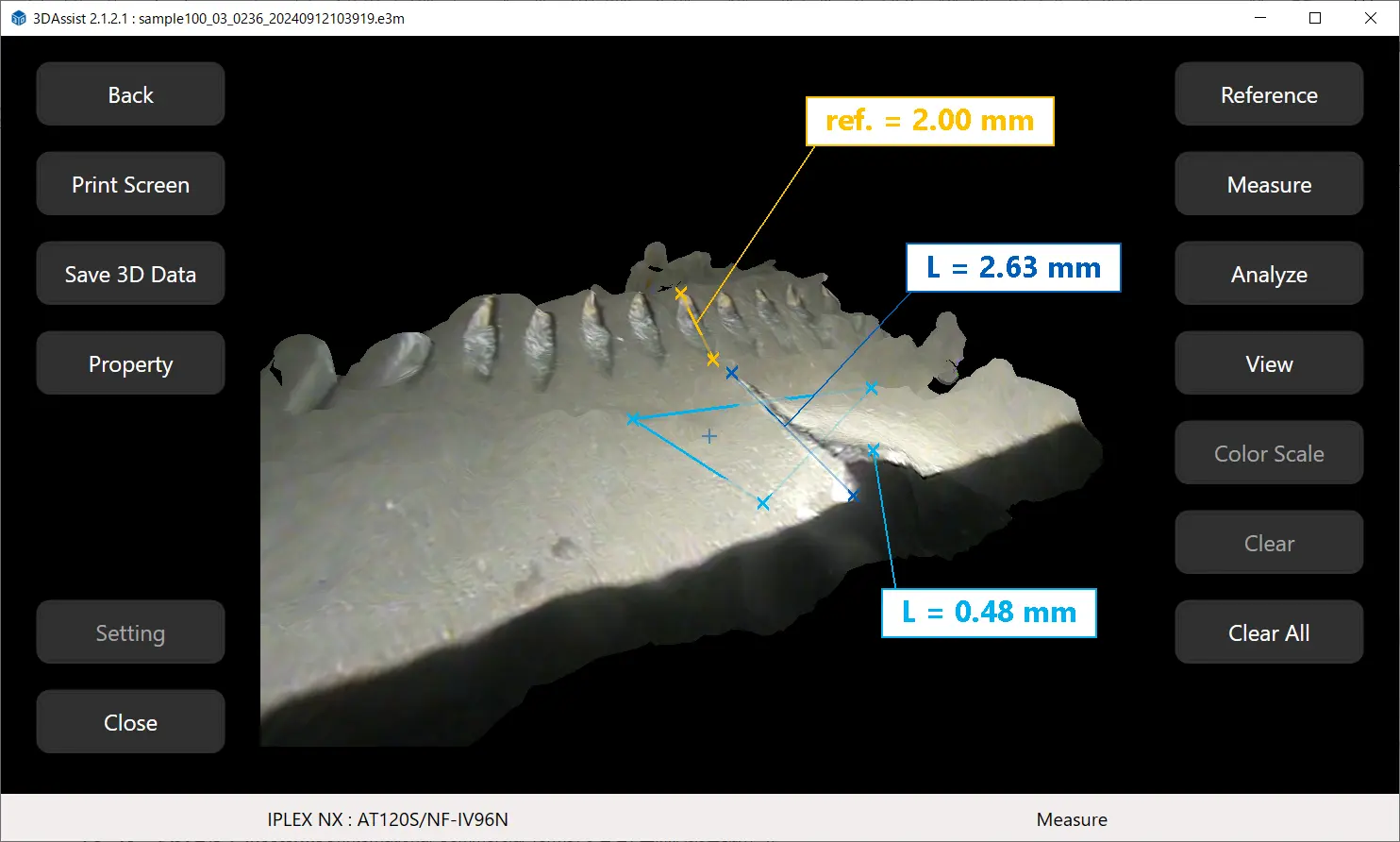 O 3DAssist™ é o software de modelagem 3D da Evident desenvolvido para trabalhar com os videoscópios IPLEX™. Ele converte vídeos de inspeção em modelos tridimensionais da área inspecionada (por exemplo, trechos de tubulação, superfícies internas, soldas e áreas com corrosão), permitindo visualizar, medir e documentar defeitos com muito mais clareza.